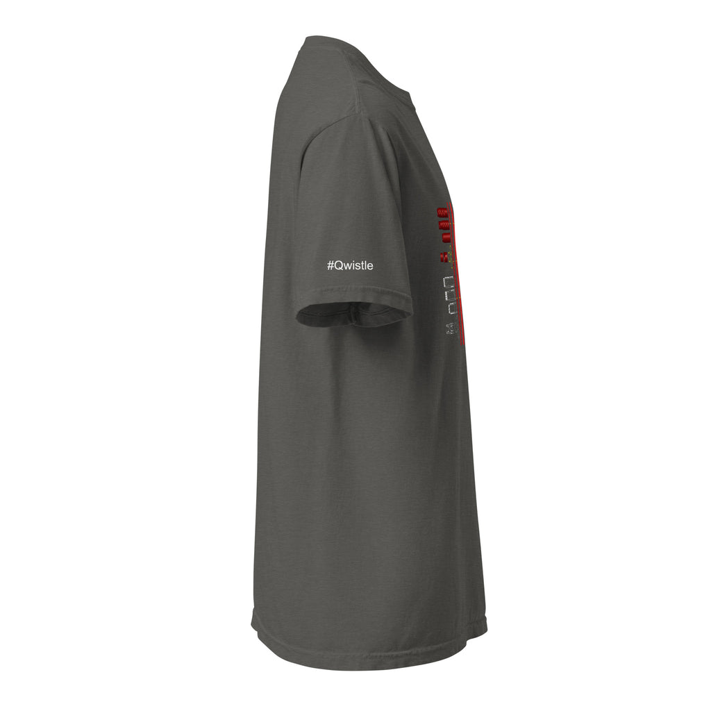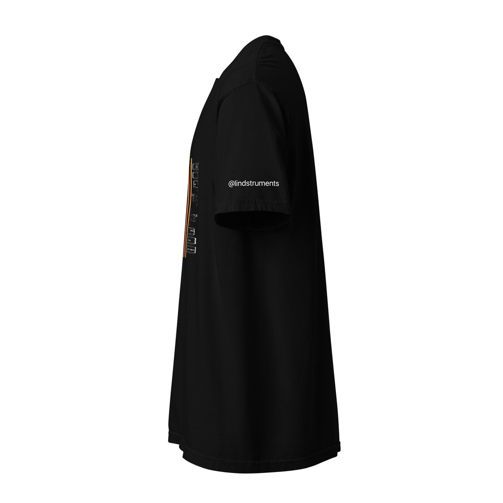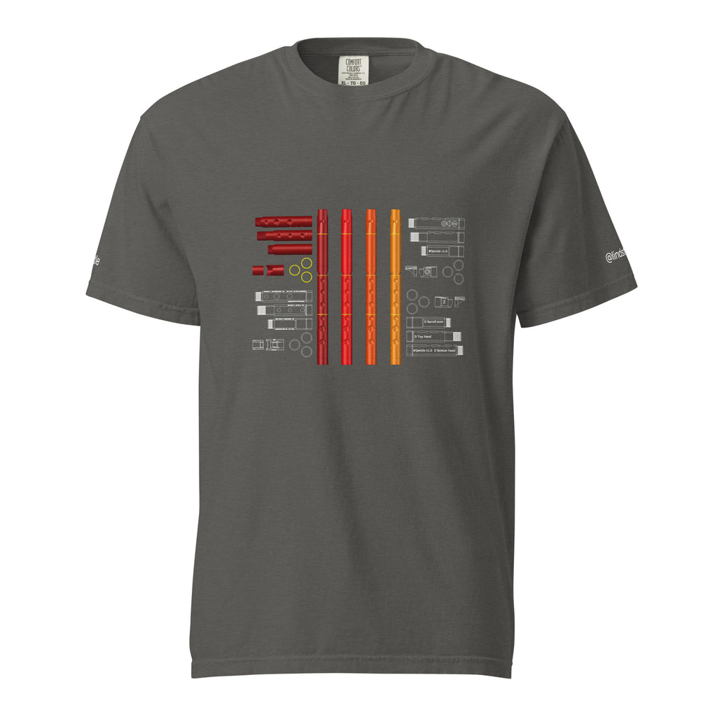 A quality t-shirt in a choice of three colours, and bearing the image of Lindstruments' #Qwistle 3D printable penny whistle file kit.